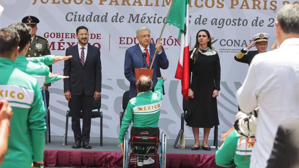 La Delegación Mexicana que participará en los Juegos Paralímpicos de Paris 2024 fue abanderada en Palacio Nacional por el presidente de los Estados Unidos Mexicanos, Andrés Manuel López Obrador con Fabiola Ramírez Martínez y Salvador Hernández Mondragón
