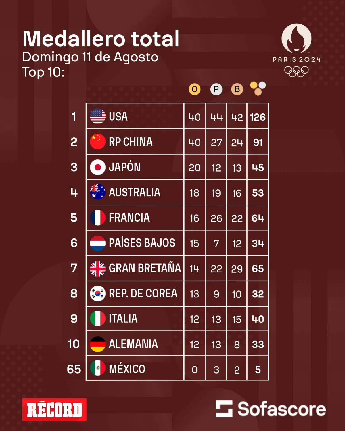 Aunque China también alcanzó las 40 preseas doradas, el país norteamericano aseguró el primer lugar gracias a su mayor número de medallas de plata, lo que inclinó la balanza a su favor.