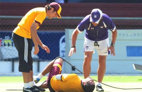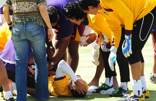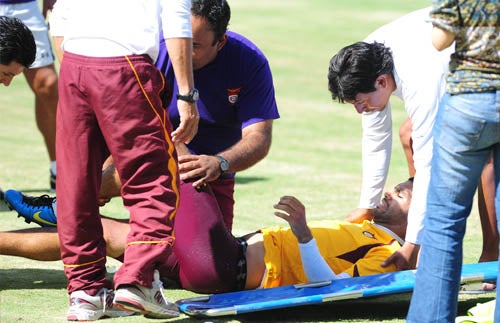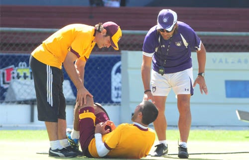 De inmediato el jugador fue atendido en el terreno de juego (FOTO: EVA BECERRA)