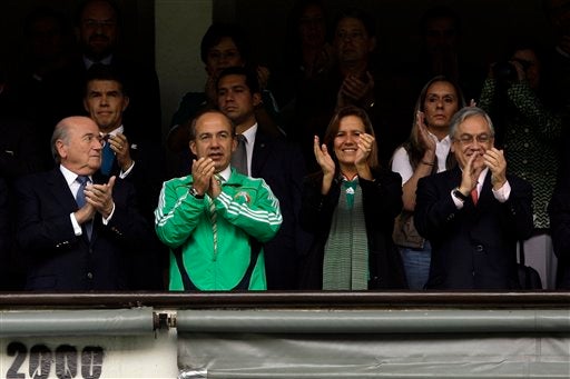 Blattter, el presidente Felipe Calderón y su esposa Margarita Zavala durante la Final. FOTO: AP