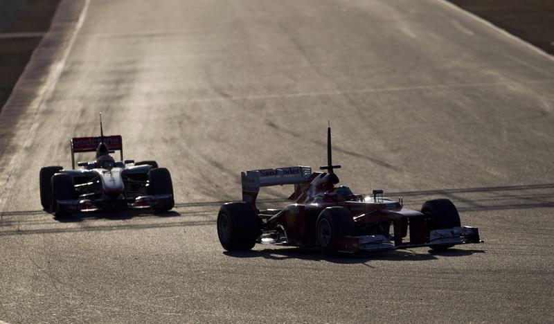 Lewis Hamilton y Alonso en el segundo día de pruebas. FOTO: EFE