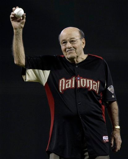 Joe Garagiola es el encargado de lanzar la primera bola. FOTO: AP