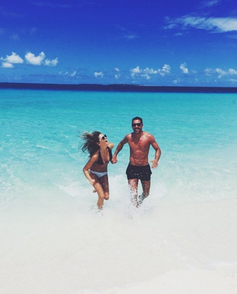 Cholo Simeone y Carla Pereyra, juntos disfrutando del mar
