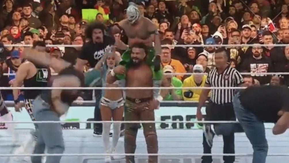 Durante la distracción, Rey Mysterio aplicó un 619 a Escobar y a su hijo para asegurarse una nueva victoria en WrestleMania XL.