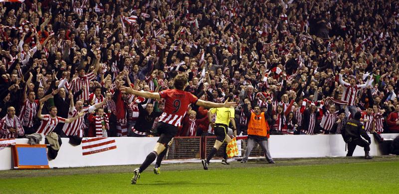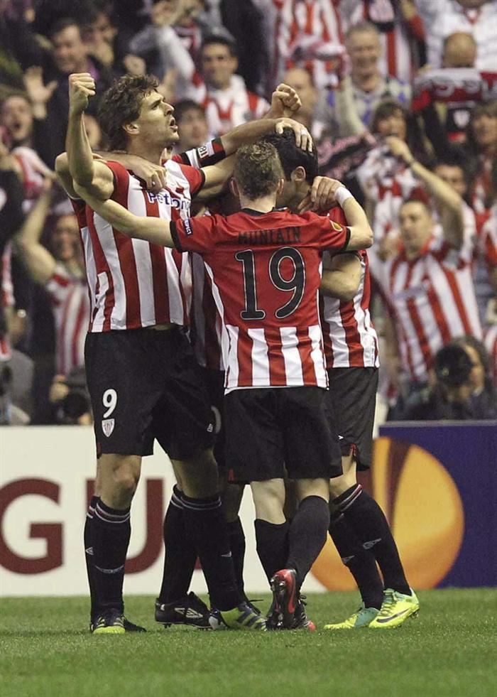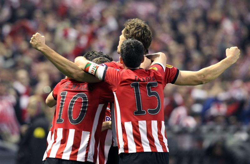 Los jugadores del Athletic celebran triunfo sobre el Manchester United (5-3 global). FOTO: EFE