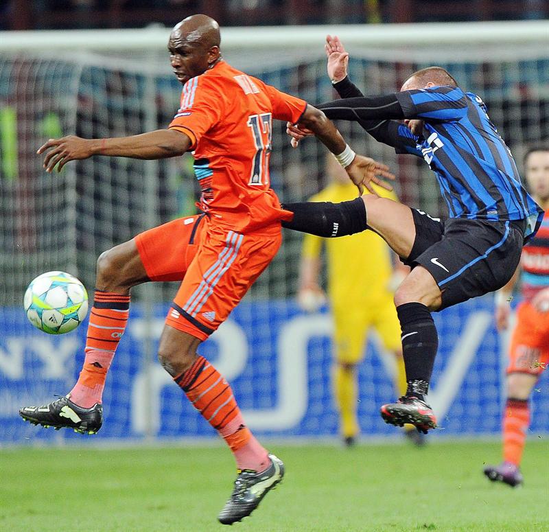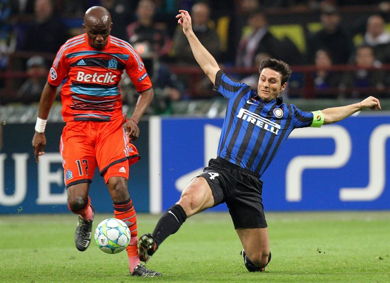 Zanetti disputa el esférico con Mbia. FOTO: EFE