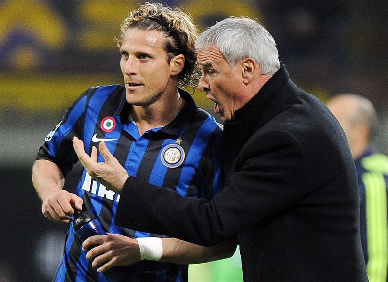 Forlán recibe instrucciones de Claudio Ranieri. FOTO: EFE