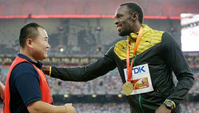 Usain Bolt bromeó sobre el incidente que tuvo con un camarógrafo que lo arrolló cuando se encontraba festejando su triunfo, pues el atleta mencionó que uno de sus rivales le pagó al hombre para que lo derribara.