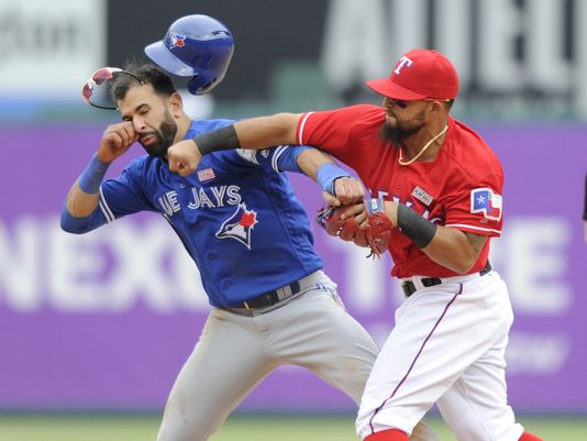 La tensión se había acumulado desde el 14 de octubre, cuando Bautista rompió el empate mediante un jonrón de tres carreras frente a Sam Dyson, en el quinto juego de la serie de división. El dominicano se quedó mirando la pelota durante un instante y luego lanzó su bate hacia arriba, haciéndolo girar en el aire.