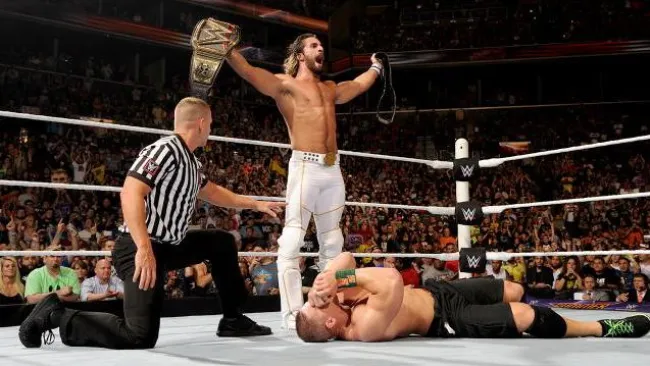 El final fue sorpresivo y pocos entendieron la acción del conductor de show de televisión Jon Stewart que entró al ring para golpear a John Cena, con lo cual perdió el título de los Estados Unidos a manos de Seth Rollins.