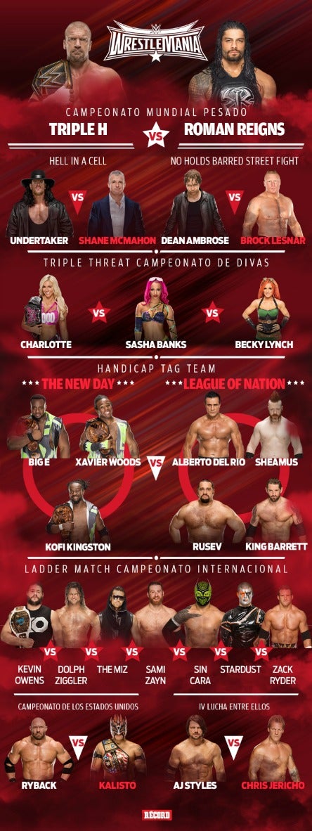 “Nada ha cambiado, sigo tan fuerte como siempre y con los deseos de mantener el cinturón. Estoy acostumbrado a estos escenarios y este tipo de peleas, soy un hombre de retos y este es uno más”, afirmó el ‘Juego’, quien tiene marca de nueve victorias y 10 derrotas en WrestleMania, es decir, tiene marca negativa en el evento.