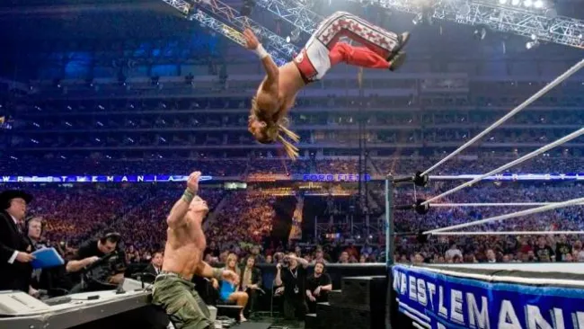 Rey Mysterio y Eddie Guerrero tuvieron grandes combates dentro del encordado, pero cuando formaban parte de la WCW, el 'dueño del 619' dio una de sus mejores muestras con un salto mortal combinado con un DDT para noquear a Eddie en el ring.