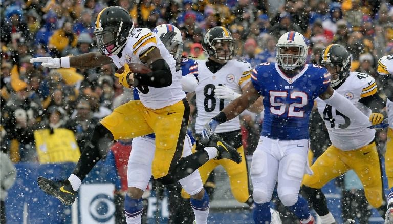 Le'Veon Bell anotó tres veces e impuso un récord de la franquicia con 236 yardas por tierra bajo una inclemente nevada, para que Pittsburgh Steelers superara 27-20 a los Buffalo Bills.