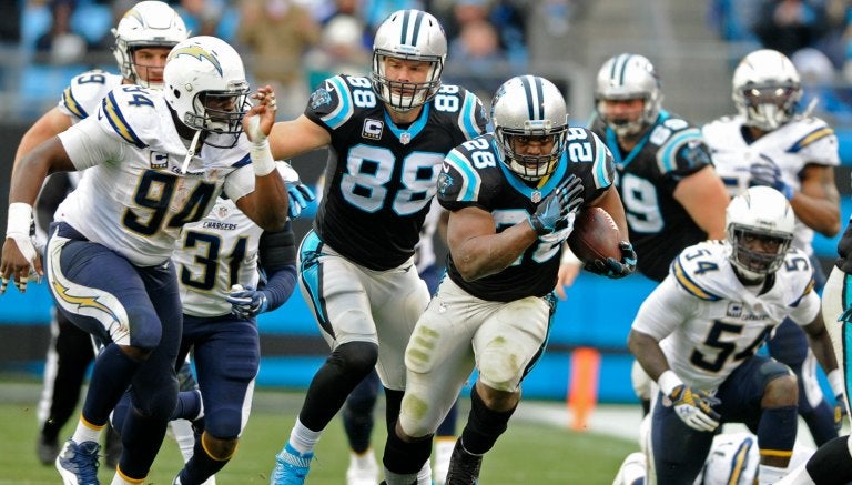 Jonathan Stewart corrió para 66 yardas y una anotación, en tanto que Graham Gano convirtió cuatro goles de campo.