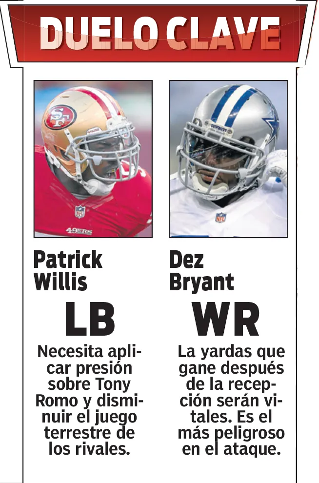 Los actuales campeones de la NFL sometieron sin problemas al ataque de Green Bay. Actualmente, la de los 49ers quiere hacer lo mismo ante la ofensiva de los Vaqueros, que está conformada por hombres que pueden hacerles bastante daño como Tony Romo, Dez Bryant, Jason Witten y DeMarco Murray.