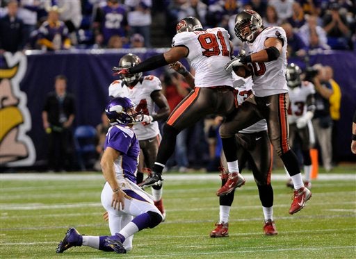 La defensiva de Tampa Bay también hizo su trabajo, pues provocó 2 balones sueltos en la primera mitad. Primero, su víctima fue el receptor Jerome Simpson, lo que les dio sus primeros tres puntos, en el segundo cuarto.