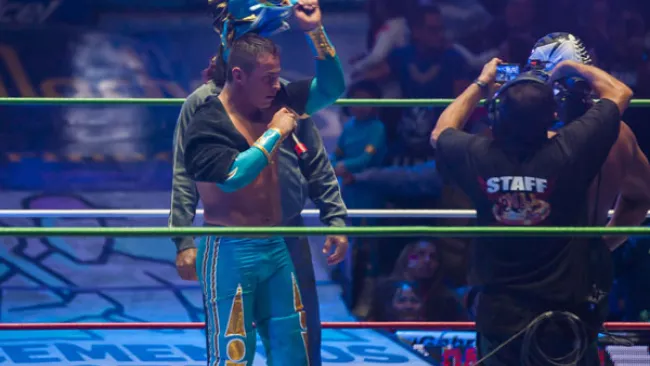 Así, ambos jóvenes se enfrentarían mascara contra mascara al finalizar la lucha de campeonatos que protagonizaron Místico, Máscara Dora y Valiente ante Dragón Rojo, Pólvora y Rey Escorpión, la cual, fue ganada por la tercia técnica.