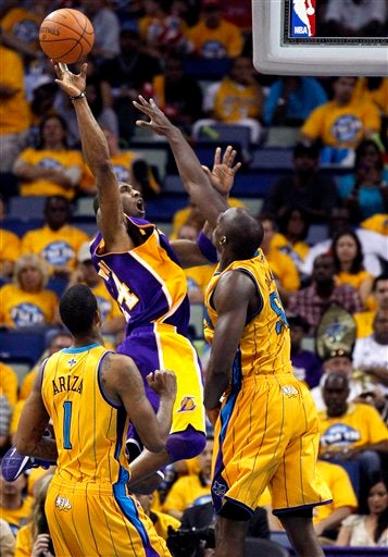 Kobe Bryant encestó 30 puntos, Pau Gasol superó un pobre desempeño ofensivo en la Postemporada con 17 puntos y recuperó 10 rebotes y los Lakers de Los Ángeles recuperaron el control de la serie de Primera Ronda de los Playoffs al derrotar el viernes por 100-86 a los Hornets de Nueva Orleans.