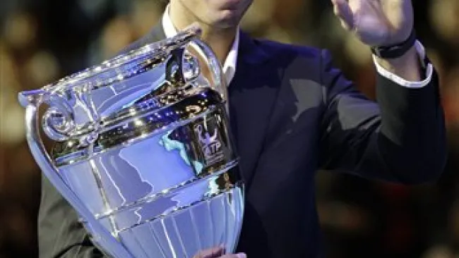 El español Rafael Nadal recibió hoy de manos del presidente de la ATP, Adam Helfant, el premio correspondiente por terminar la temporada como número uno del tenis mundial.