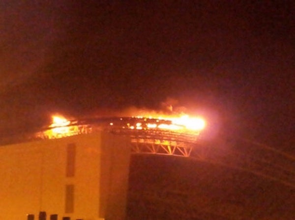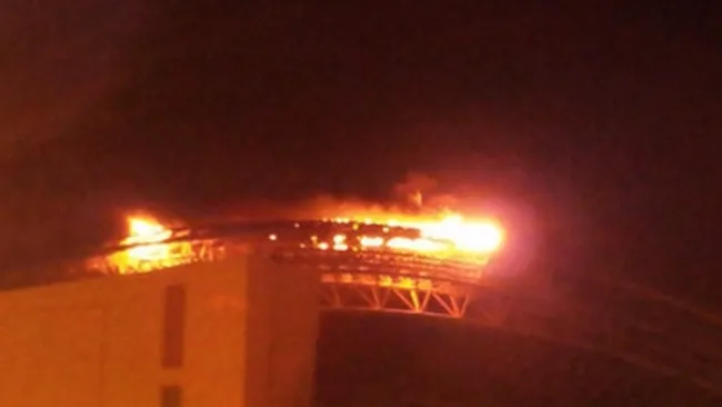 El director del cuerpo de bomberos, Héctor Chaves, dijo a periodistas que el fuego consumió unos 20 metros en el techo del sector oeste del estadio pues se incendiaron varias láminas de policarbonato.