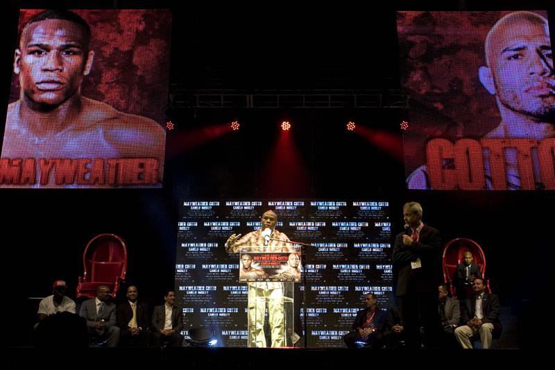 Floyd Mayweather en la presentación de su pelea con Cotto. FOTO: EFE
