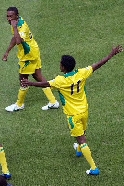 La selección de Guyana celebra el gol que consiguieron el el Azteca l MEXSPORT
