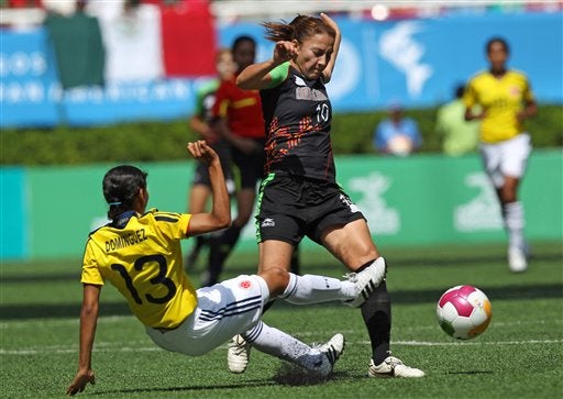 Fatima Montano de Colombia va por el balón. FOTO: AP