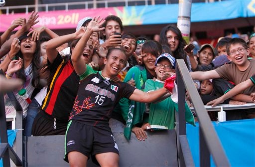 Las mexicanas disfrutan con la afición la medalla de bronce. FOTO: AP