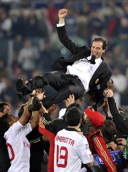 Massimiliano Allegri es vitoreado por sus jugadores (FOTO: AP)