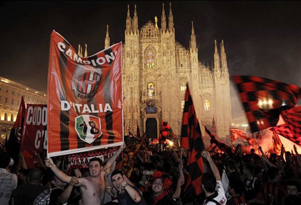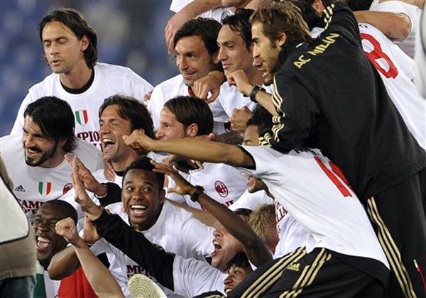 Jugadores del Milan cantan tras la obtención del título (FOTO: AP)
