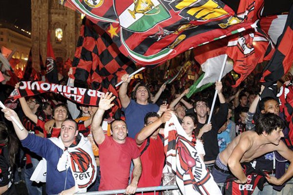 Gente festejando el 18º título de su equipo (FOTO: AP)