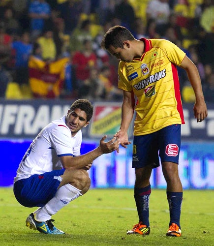 La decepción de los jugadores celestes fue compadecida por los de Morelia. FOTO: JORGE BARAJAS