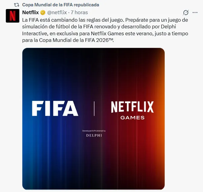 “Me complace anunciar que la FIFA se ha asociado con Netflix Games y Delphi Interactive antes de la Copa Mundial de la FIFA 2026.