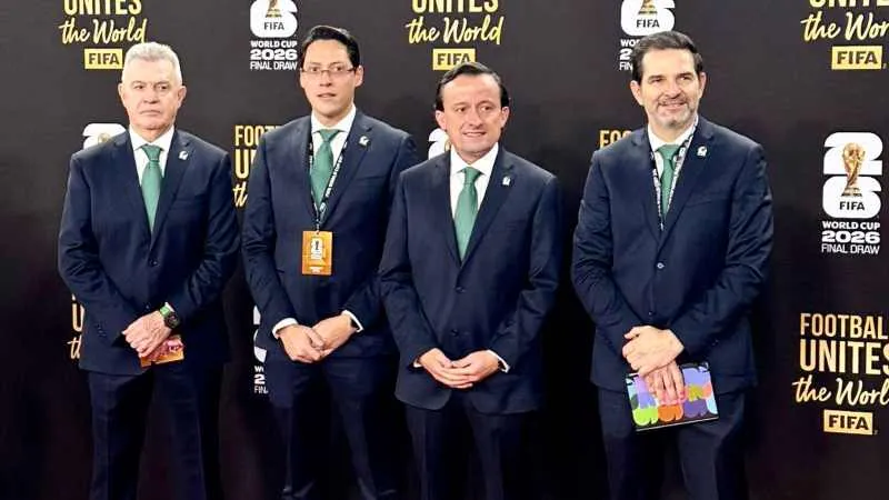 La delegación mexicana comandada por Javier Aguirre, Mikel Arriola y Duilio Davino.