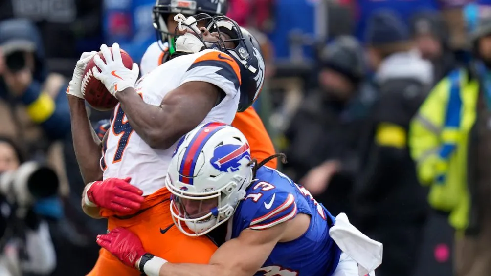 Lo peculiar fue que el receptor abierto iba descalzo, con vestimenta ideal para la playa mientras el clima en Highmark Stadium es de -7°, lo que generó diversos comentarios de asombro en redes sociales.