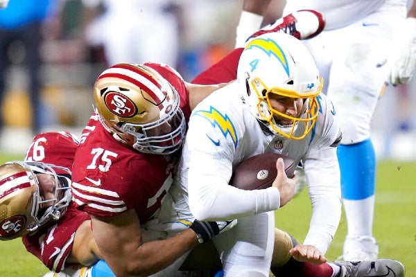 Tras el tercer gol de campo de Robbie Gould en el cuarto periodo, los Chargers tuvieron aún una serie ofensiva para buscar retomar la ventaja. La defensiva de los 49ers — que estará el 21 de noviembre jugará sobre el césped del Estadio Azteca — logró detener a la unidad comandada Justin Herbert tras la intercepción de Talanoa Huganfa con menos de un minuto en el reloj.