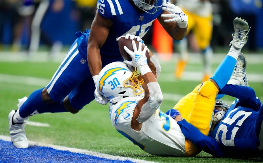 Austin Ekeler anotó con dos carreras de una yarda y Los Ángeles Chargers clasificaron por primera vez a la Postemporada desde el 2018 tras interceptar tres veces al quarterback de Indianapolis Nick Foles para superar el lunes por 20-3 a los Colts.