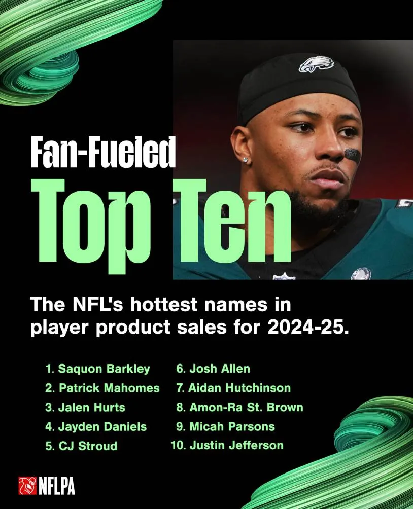 En la cima dentro y fuera del emparrillado. La tarde de este miércoles, la NFLPA (Asociación de jugadores de la NFL) dio a conocer la lista de ventas de artículos oficiales del año pasado, lista que es liderada por la estrella de los Philadelphia Eagles, Saquon Barkley.