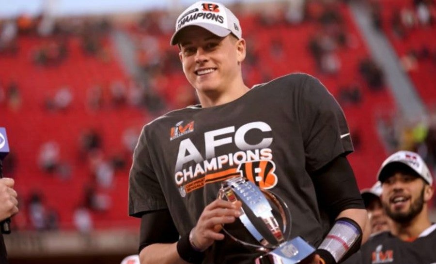 Joe Burrow dio una muestra de su hmulidad después de conseguir con los Cincinnati Bengals el pase al Super Bowl LVI ante Los Angeles Rams.