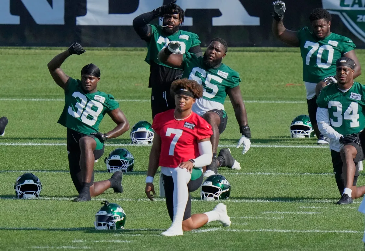 El entrenador de primer año, Aaron Glenn, detuvo el entrenamiento después de que Fields se lastimó y los Jets realizaron ejercicios de equipos especiales.