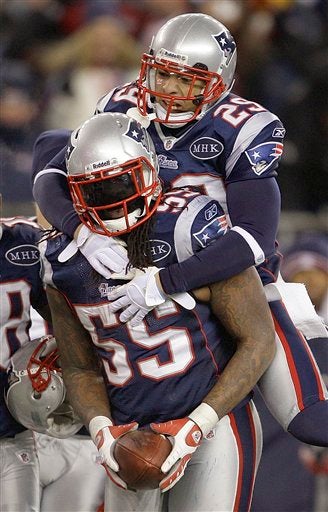 Sterling Moore y Brandon Spikes celebran. FOTO: AP