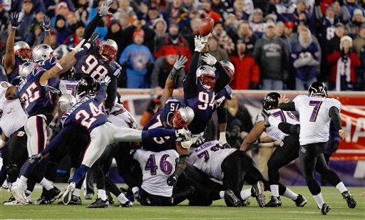 Los Patriotas de Nueva Inglaterra derrotaron 23-20 a los Cuervos de Baltimore. FOTO: AP