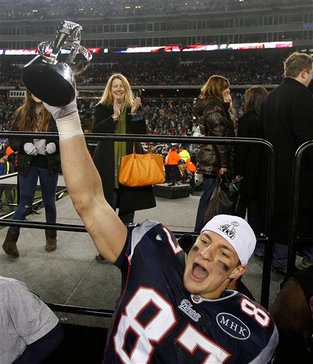 Rob Gronkowski sostiene el trofeo de la AFC. FOTO: AP