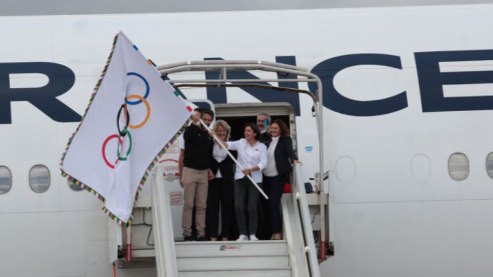 La bandera desembarcó en la capital francesa un día después de la ceremonia de clausura de Tokio, en la que París tomó el relevo de la antorcha olímpica.