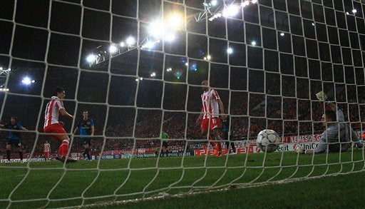 Francois Modesto marca para Olympiacos. FOTO: AP