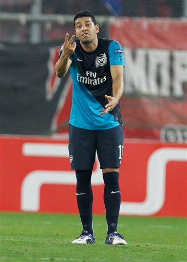 Andre Santos reclama ante el segundo gol de Olympiacos. FOTO: AP