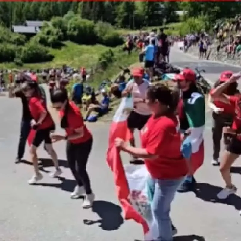 Cerca de 10 aficionados protagonizaron el famoso baile llamado ‘Payaso de Rodeo’ dentro de la etapa 20 del Giro a una de finalizar la campaña.