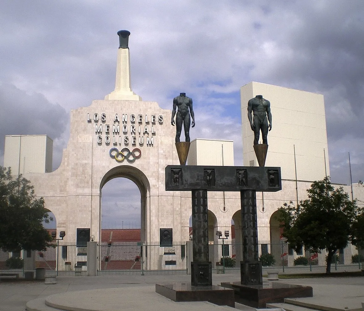 La antorcha que encendió el medallista de oro en decatlón Rafer Johnson en los Juegos de Los Ángeles 1984 todavía se encuentra en la entrada del Coliseo.