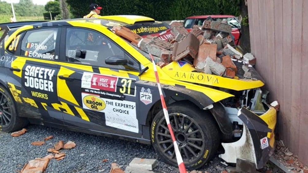 Durante la novena etapa del Rally de Bélgica, el piloto Pietr Tsjoen tuvo una complicación y se estrelló contra una casa.