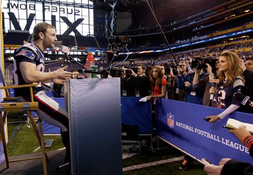 Jugadores de Patriotas atienden a la prensa durante el Día de Medios (FOTO: AP)